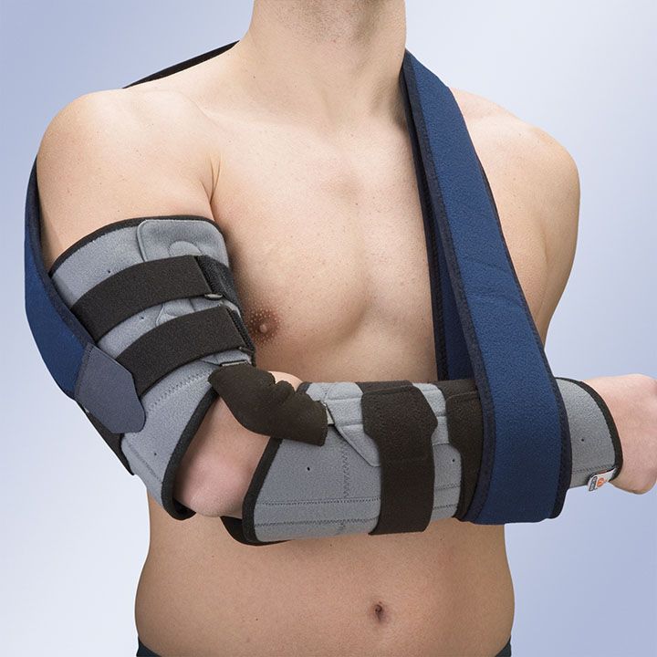 Formada per una valva de braç i una altra d'avantbraç unides entre si mitjançant articulació monocèntrica amb possibilitat de regular la flexoextensió de 0 º a 90 º en intervals de 15º a 15º. L'articulació amb platines que van embotides en teixit amb microvelcro que ens permet adaptar-nos a la longitud del membre superior tractat. Les valves, tallades en forma anatòmica i perforades per millorar la transpiració, tenen una capa externa de velour, una interna de suau tovallola hipoalergènica i una ànima de termoplàstic que proporciona suport i rigidesa. Cinxes d'ajust i tancament en velour a doble cara amb sivella passador.