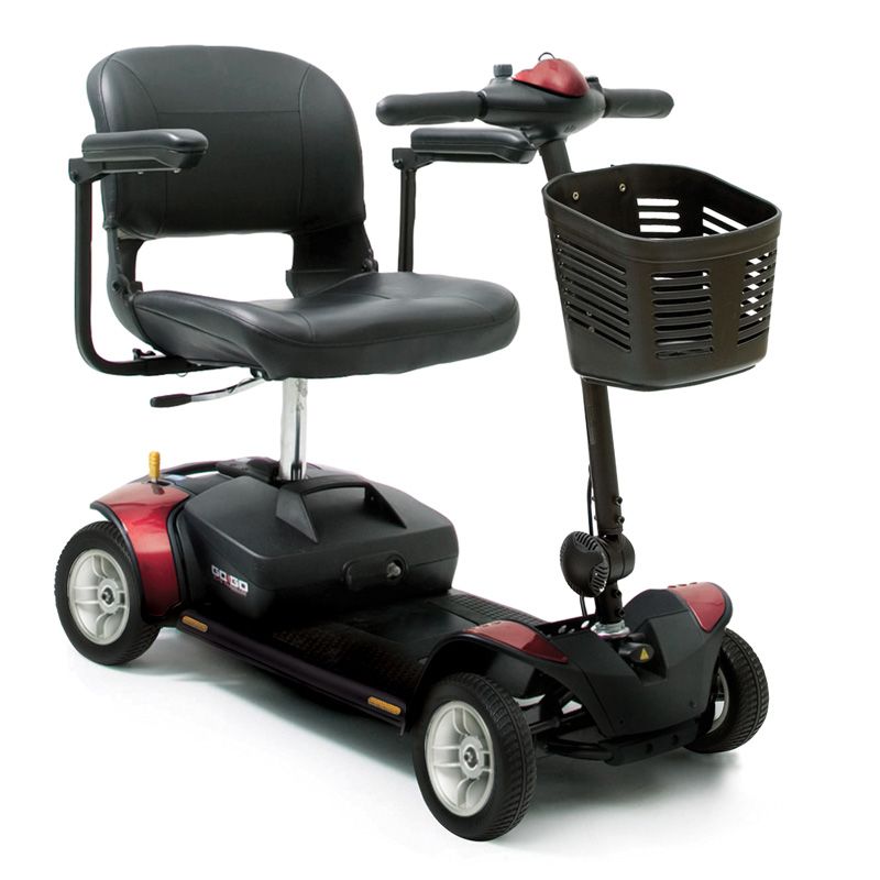 Les reduïdes dimensions de l'escúter GO-GO permet maniobrar fàcilment en espais petits alhora que proporcionen un rendiment òptim en exteriors. Es desmunta en qüestió de segons. És molt fàcil de transportar i cap en la majoria de maleters. Això fa que l'scooter GO-GO sigui ideal per viatjar. El seient és giratori i regulable en alçada de 42 a 47 cm. Les rodes són antipunxades i no requereixen manteniment. També incorpora una cistella portaobjectes a la part davantera. El scooter GO-GO està disponibles en dues versions. La versió clàssica de 4 rodes i la versió més compacta i maniobrable de 3 rodes. Les dues versions es poden triar amb bateries de 12 Ah o 17 Ah (aquesta última augmenta l'autonomia fins a 23 km).